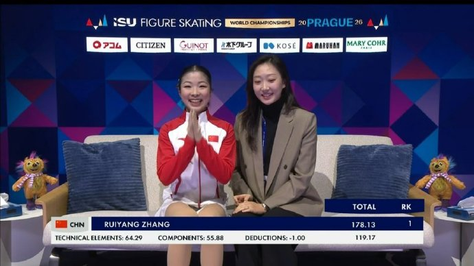 虎扑03月28日讯2026年花样滑冰世锦赛女单自由滑,18岁的中国选手张瑞阳虽然有小的失误,但整体动作完成质量很高,得到119.17分,总分178.13分,最终排名第16位。